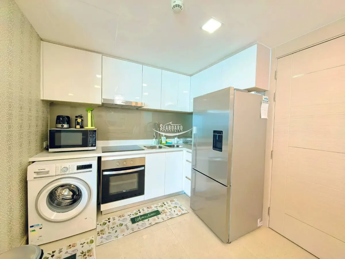 Features: Modern luxury interior, fully furnished, spacious balcony overlooking the Gulf of Thailand, and premium kitchen appliances.